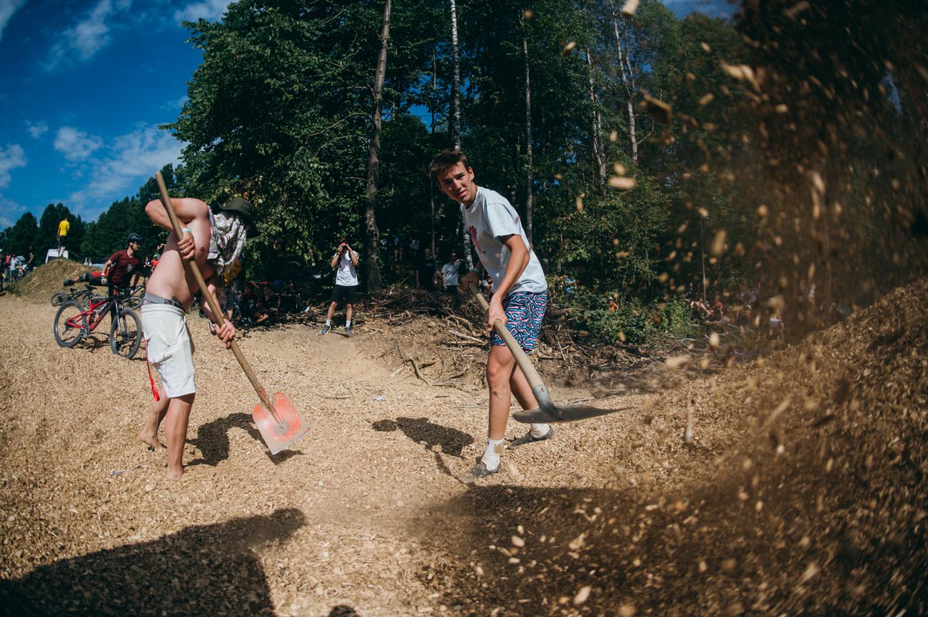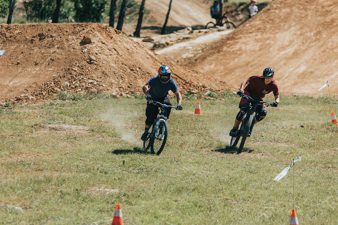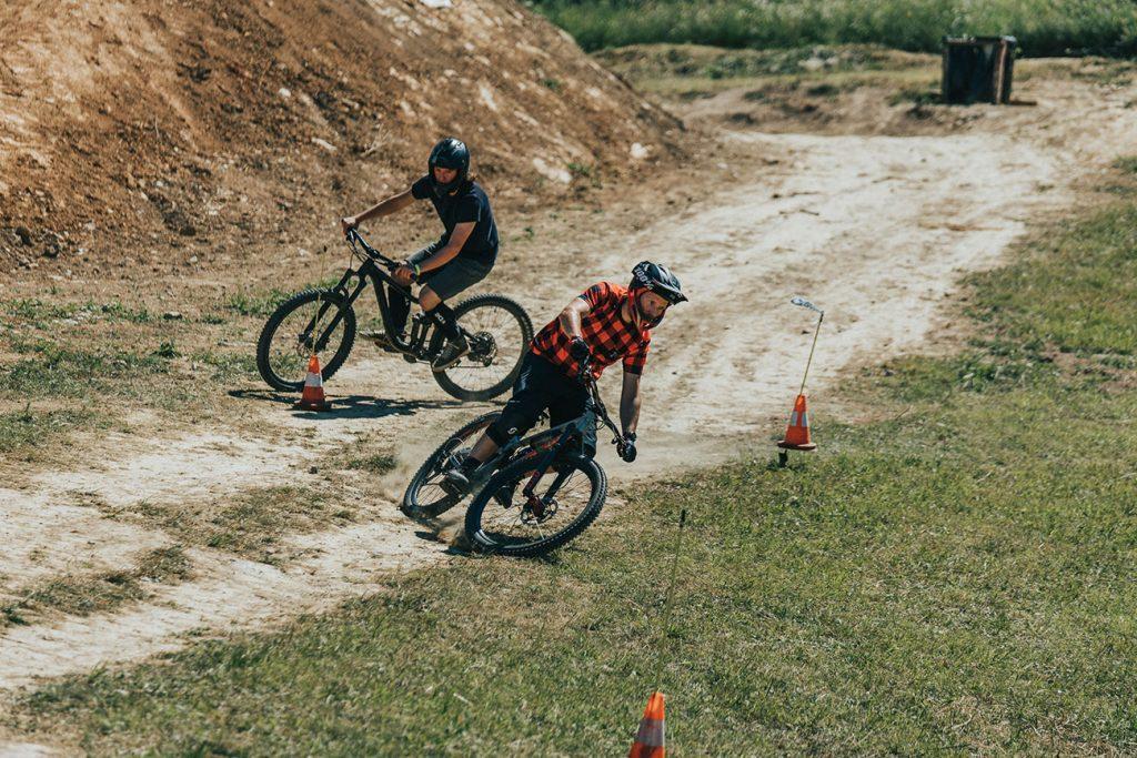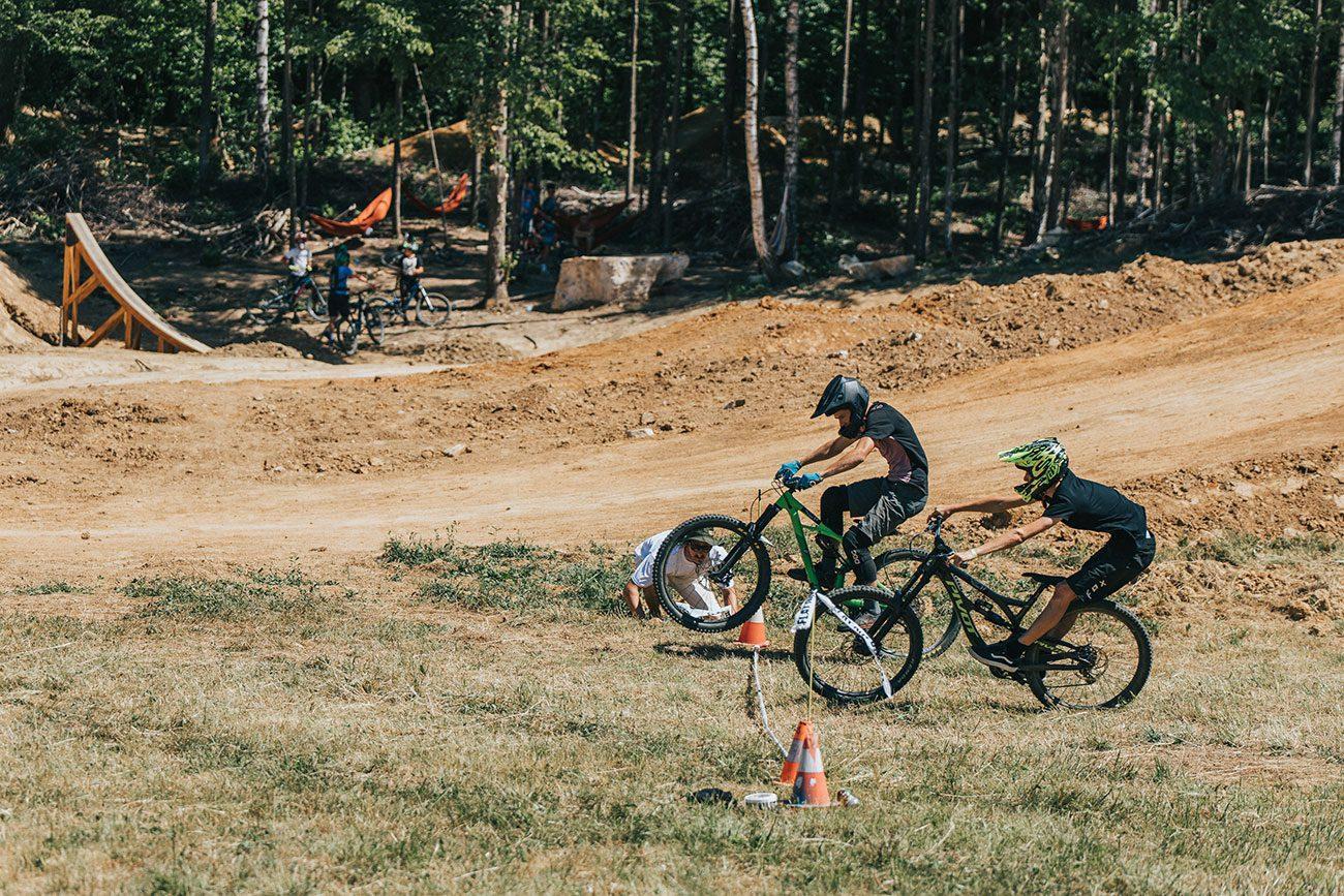 Erik Kralj, Matej Žan in že kakšna fristajl faca delijo znanje z mladimi kolesarji. Ga ni primernejšega mesta, kot so male dirt linije v gozdičku.