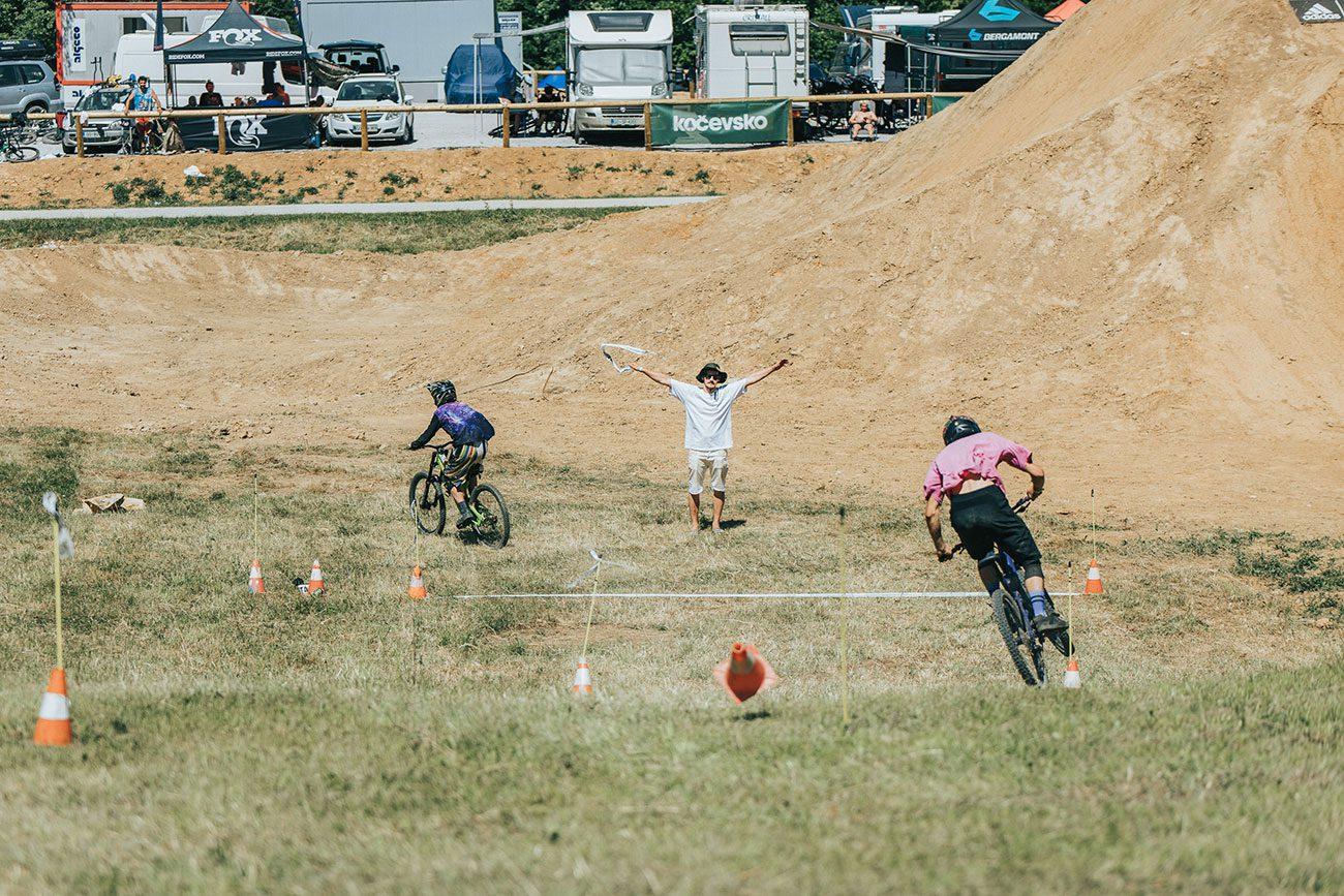 Poletje je in če v Dolgi vasi pri Kočevju voda ni čisto pri roki, je možnosti nekaj – dričanje v trail centru (kdo je zmagal, ne vemo – tisti, ki dviguje nagrado, dron), krajši premik do Rudniškega jezera ali pa izlet do Kolpe. Cele dneve pa tudi ne moreš bit na kolesu!