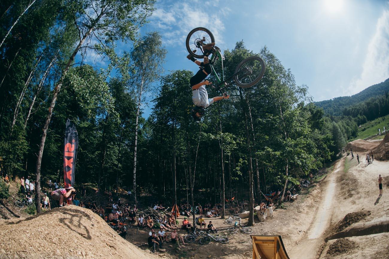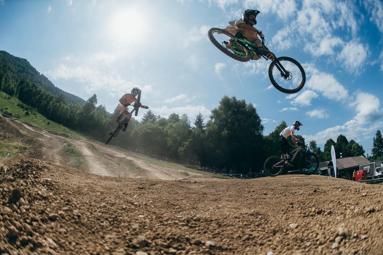 Pa še tekmovanje v bunny-hopu čez letev in v novi disciplini, ki bi nas zares presenetila, če bi kdaj dobila olimpijski status – “shralping” je shredding, ripping in crushing hkrati. Aja, tu pa prepoznamo zmagovalce – CJ in JJ v šralpingu! CJ Seling in Janez Jakob Dremelj. V bunny-hopu pa Matej Žan na BMX in Robert Sedmak na MTB.