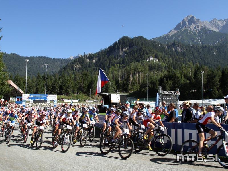 Nas je seveda najbolj zanimala dirka članic, v kateri sta se za najvišja mesta borili Blaža Klemenčič in Tanja Žakelj. Obe sta štartali iz druge vrste, imeli približno enako dober štart, nato pa sta se vsaka za svojo mesto borili vse do ciljne črte. Blaža je bila v skupini tekmovalk, ki so se borile celo za četrto mesto. Med seboj so se izmenjavale in vsaka je bila boljša na določenem delu dobro prepletene proge z zelo zanimivim gozdnim odsekom in štartno-ciljnim prostorom okoli nogometnega igrišča. Blaža je dirko na koncu končala deseta, ta uvrstitev ji je na svetovnih prvenstvih že kar preveč domača. Tri mesta za njo je dirko končala Tanja, ki ji je v zadnjih metrih zmanjkalo moči za šprint proti Morathovi. Za obe se je sezona s tem končala in to z zelo dobrim rezultatom; za Tanjo je to potrditev dobrega nastopa iz Londona, za Blažo pa obliž na rano iz Londona. Sicer je Blaža dejansko vozila z velikim obližem, saj je pred dvema tednoma na Češkem padla in roko ji je bilo treba šivati. Trenutek nervoze pa je doživela še pol ure pred štartom, saj so se vrata toalete zaklenila in ker ni uspela priklicati pomoči je morala splezati čez steno in nato pohiteti z ogrevanjem.