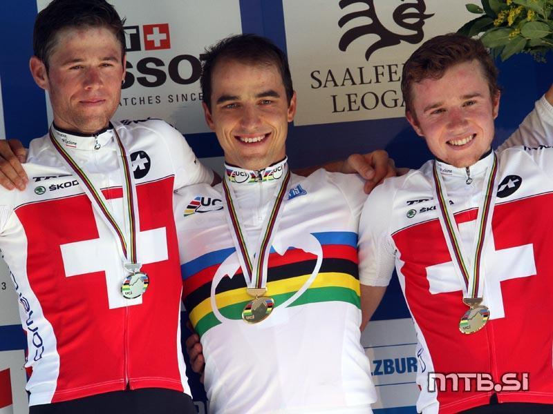 na svetovnem prvenstvu v Saalfeldnu so bile danes na sporedu tri dirke, poleg obeh članskih dirk še jutranja dirka mladincev. Ti so vozili v hladnem in vlažnem jutru, nato pa je sonce močno razgrelo prizorišče, proga je bila iz minute v minuto bolj suha, dirkanje pa vedno bolj napeto.