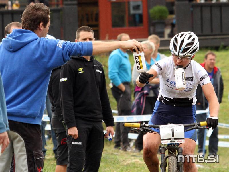 Najbližje zasledovalke je imela na današnji dirki praktično ves čas “pod nadzorom”, saj je bilo vodstvo v pokalu majhno. “Videla sem, da je Katerina Nash za menoj, Majo Wloszczowsko pa sem imela stalno na očeh, zato je bil pritisk manjši. Ko sem videla, da se danes ne morem boriti za zmago, sem imela edini cilj ubraniti belo majico in zato mi je bilo malo lažje, saj sem imela obe tekmici okoli sebe, nato pa sem ju tudi prehitela,” je odločilni boj komentirala Tanja. Medtem je vodstvo prevzela Rusinja Irina Kalentjeva in se odpeljala do suverene zmage, Tanja pa se je prebila z osmega na končno šesto mesto.