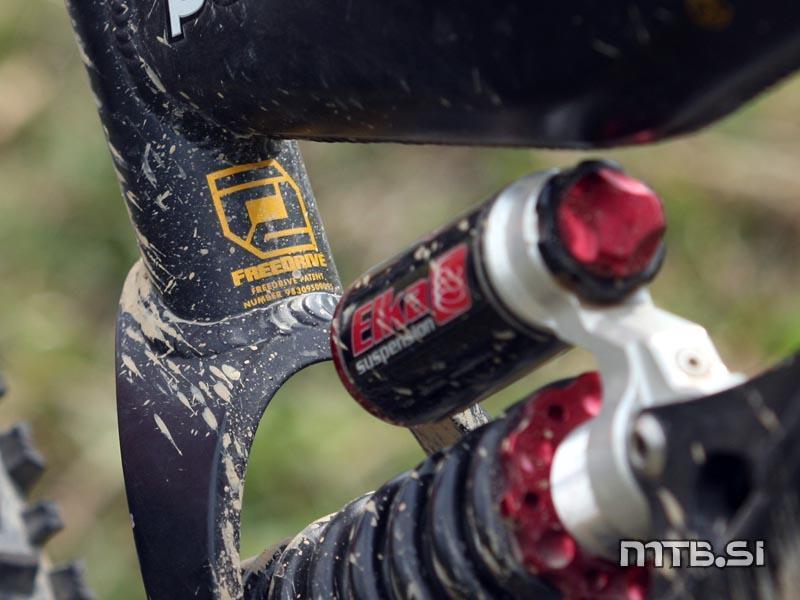 Kolo ponuja 210 mm hoda, sistem vzmetenja Freedrive pa je tehnično soroden z GT-jevim sistemom Independent Drivetrain, kar je seveda posledica združitve obeh znamk znotraj istega podjetja. Rok je nadvse zadovoljen s kombinacijo sistema in amortizerja, enakega mnenja pa so tudi mnogi testni vozniki iz drugih koncev sveta.