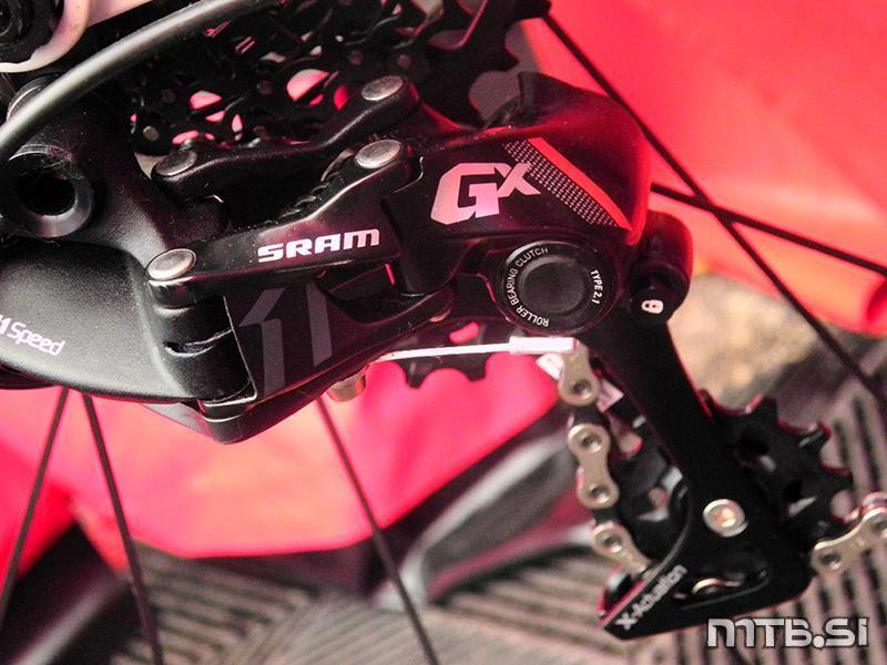 Če so Nemci svoj izum še skrivali, je Sram tu prvič pokazal novo grupo GX. Nadomestila bo dosedanjo X7 in X9. Na voljo bodo prenosi 1×11, 2×11 ali 2×10 z GripShiftom ali s klasičnim shifterjem. Zanimivo je, da bo vsak prenos imel drugačen, sebi prilagojen menjalnik. Ta je lahko po novem opremljen s podobno sklopko, kot jo ima Shimano in preprečuje preveliko nihanje kletke.