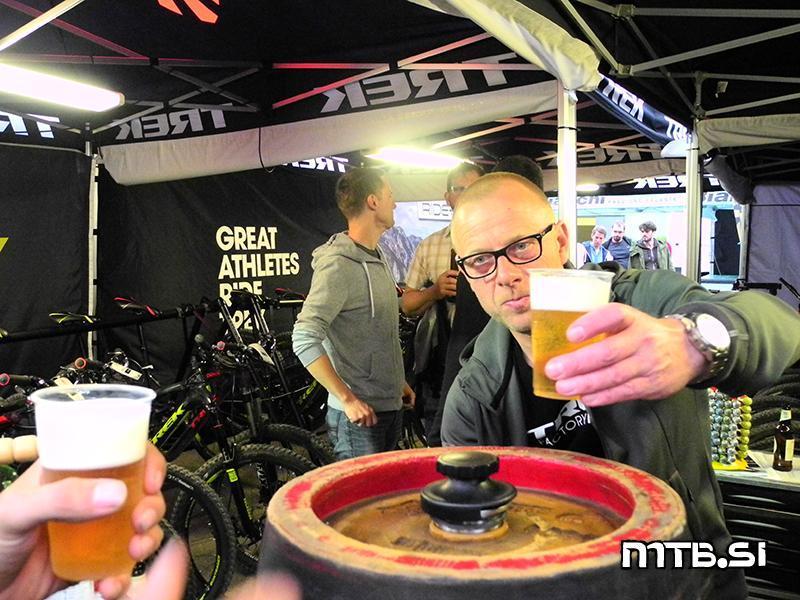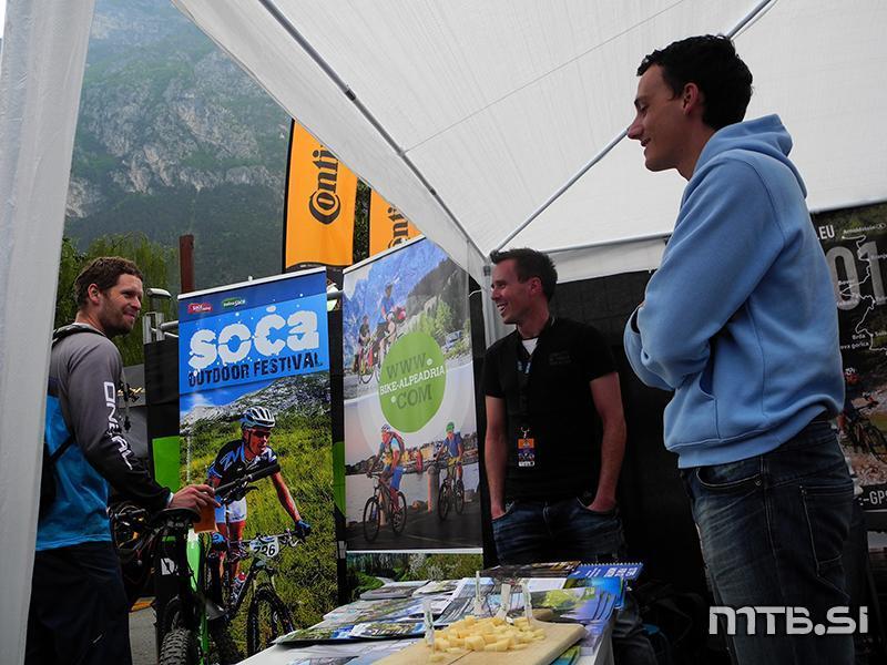 Slovence smo našli na dveh sejemskih prostorih. Prvi so bili fantje s Posočja. Peter Drakskobler, Jan Klavora in prijatelji so uspešno predstavljali naš smaragd – dolino Soče in Ulijevo mtb traso Trans Slovenije. Uli Stanciu je seveda ustanovitelj nemške revije Bike in začetnik festival na Gardi. Nič čudnega, če so mu nad jezerom že za časa življenja postavili spominsko ploščo. Morda ga kaj takega čaka tudi nad Sočo. Med mojim obiskom sta bila tam še Karmen Razlag in Borut Ramšak z lesenim kolesom Tine Krajnc in predstavljala turistično destinacijo Maribor – Pohorje.