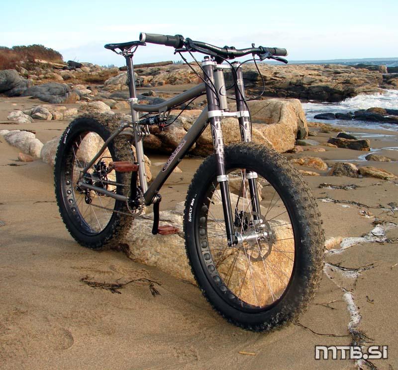 Danes je proizvajalcev kar nekaj, seveda le med maloserijskimi znamkami, ki smo jih minule dni lahko spoznavali na sejmu v Denverju (več o tem v naslednjih dneh). Svojega ima Salsa, pa Moots, On-One, Carver, Blacksheep … Plašče pod svojo znamko ponujata Surly in 45NRTH. Ti so bili doslej le za obročnike, ki jim rečemo 26-palčni, ob tako razkošnem plašču je obseg seveda precej večji. Po novem pa Surly ponuja tudi debelogumega 29-palčnika Krampus s plašči premera 3,0.