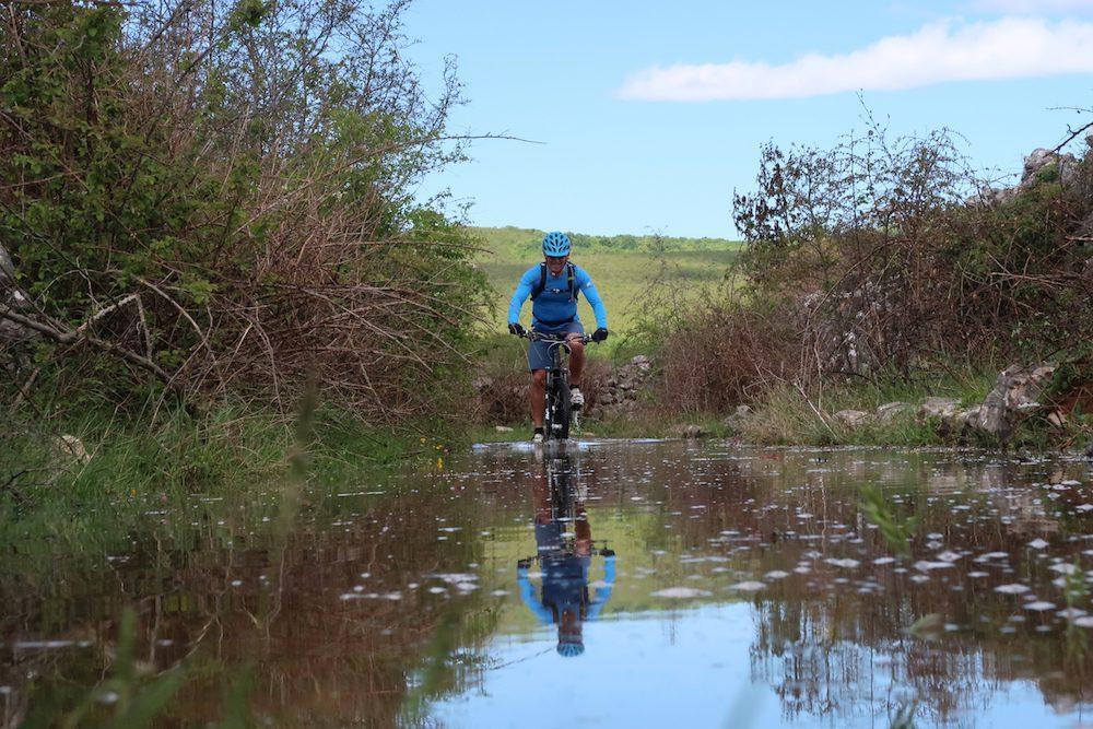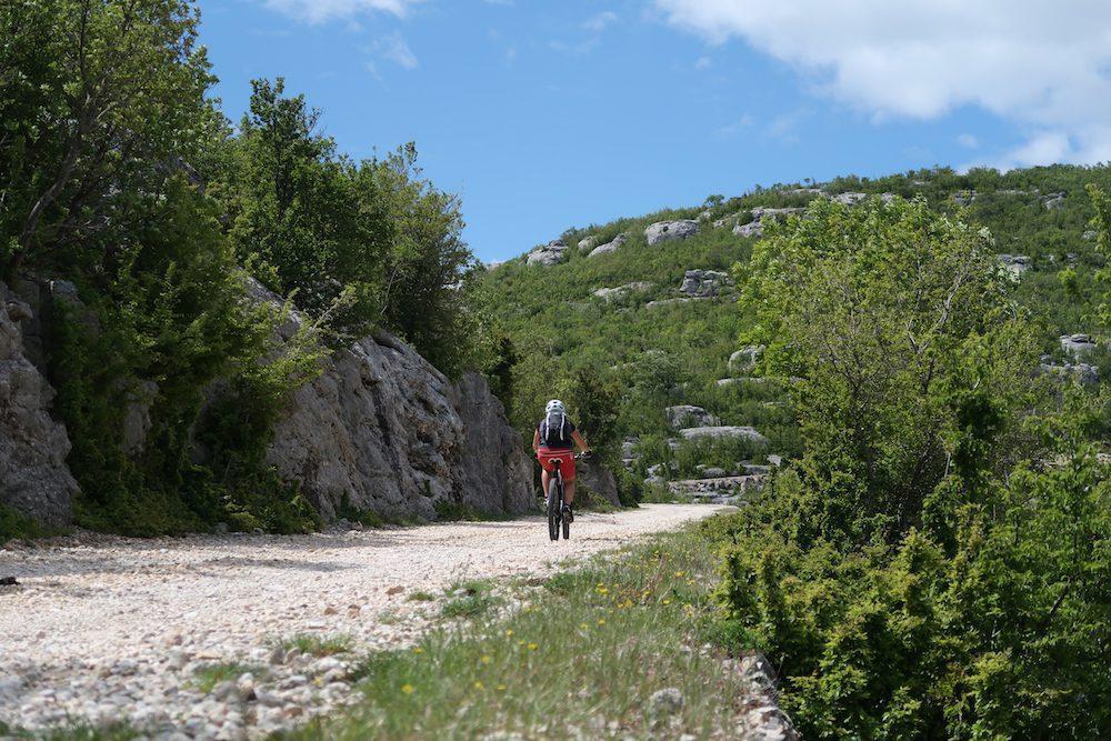 Zato so fantje iz ekipe Adria Bike tam poiskali stare poti ob reki, jih očistili, povezali z novimi in jih vrisali na zemljevid. Čeprav so speljane prav blizu Zrmanje, se le vsake toliko približajo robu kanjona, da ponudijo tisti veličastni pogled na zeleno reko.