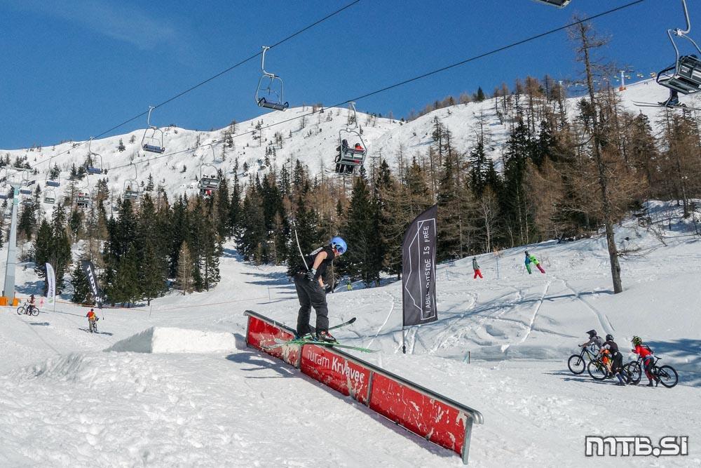 Sobotni festivalček Label Outside is free je na Krvavcu bajkerje na snegu združil s smučarji, borderji in tudi kakšnim rolkarjem.